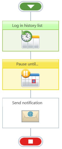 Mit der Action «Pausieren bis» besteht die Möglichkeit, einen Workflow bis zum Erreichen eines bestimmten Erinnerungsdatums (separate Listenspalte) anzuhalten. Ist dieses eingetroffen, setzt sich der Workflow fort und versendet eine Erinnerungsnachricht. Typischerweise wird solch ein Workflow direkt auf der Aufgabenliste erstellt und beim Anlegen eines neuen Listenelements gestartet.