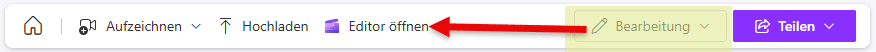 Um das Video mit dem Clipchamp Videobearbeitungstool zu bearbeiten, muss der Bearbeitungsmodus aktiv sein. Dann öffnet sich die Tür, um das Video mit dem Clipchamp Editor zu öffnen:
