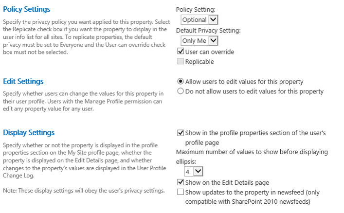 User Properties sind Felder, welche in der MySite des Users angezeigt und bearbeitet werden können. Im User Profile Service können eigene User Properties hinzugefügt werden, damit User auf ihrer MySite zusätzliche Informationen einpflegen können.