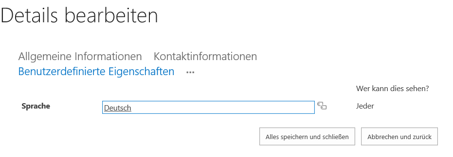 Ein anderes Beispiel wäre ein User Property für die Sprache: