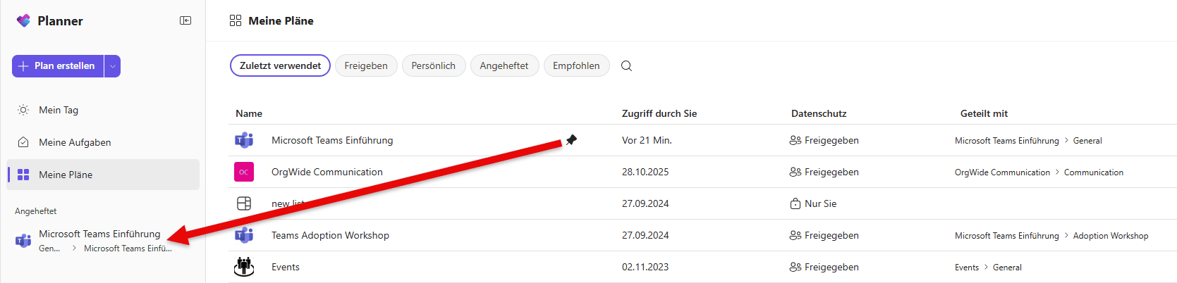 Microsoft Teams Planner App – Meine Pläne