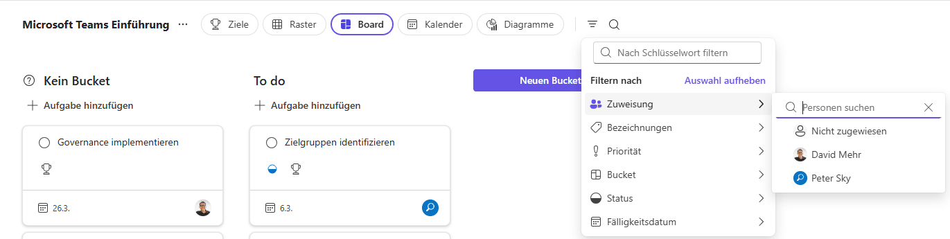 💡 Einzelne Aufgaben in Microsoft Planner Plänen können nicht berechtigt werden. Es haben immer alle Owners und Members eines Teams Zugriff auf alle Aufgaben.