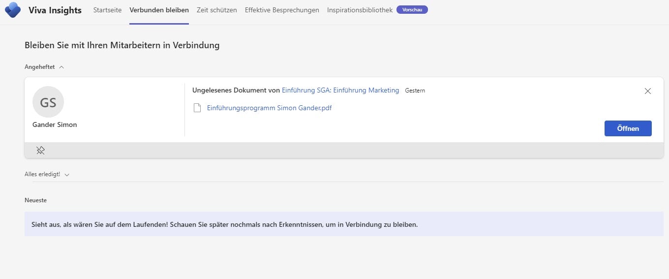 Microsoft Viva Insights: Erinnerung an ein noch nicht gelesenes Dokument
