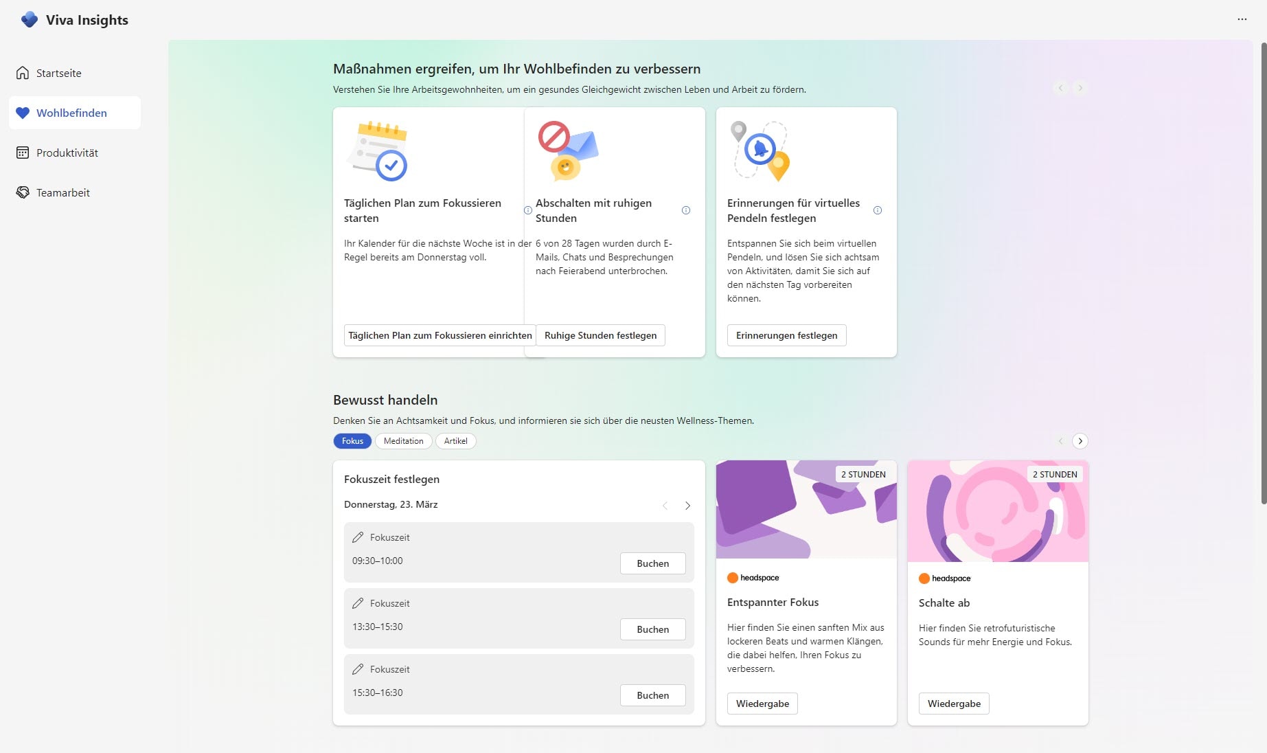 Wohlbefinden: Zeit mit Viva Insights schützen