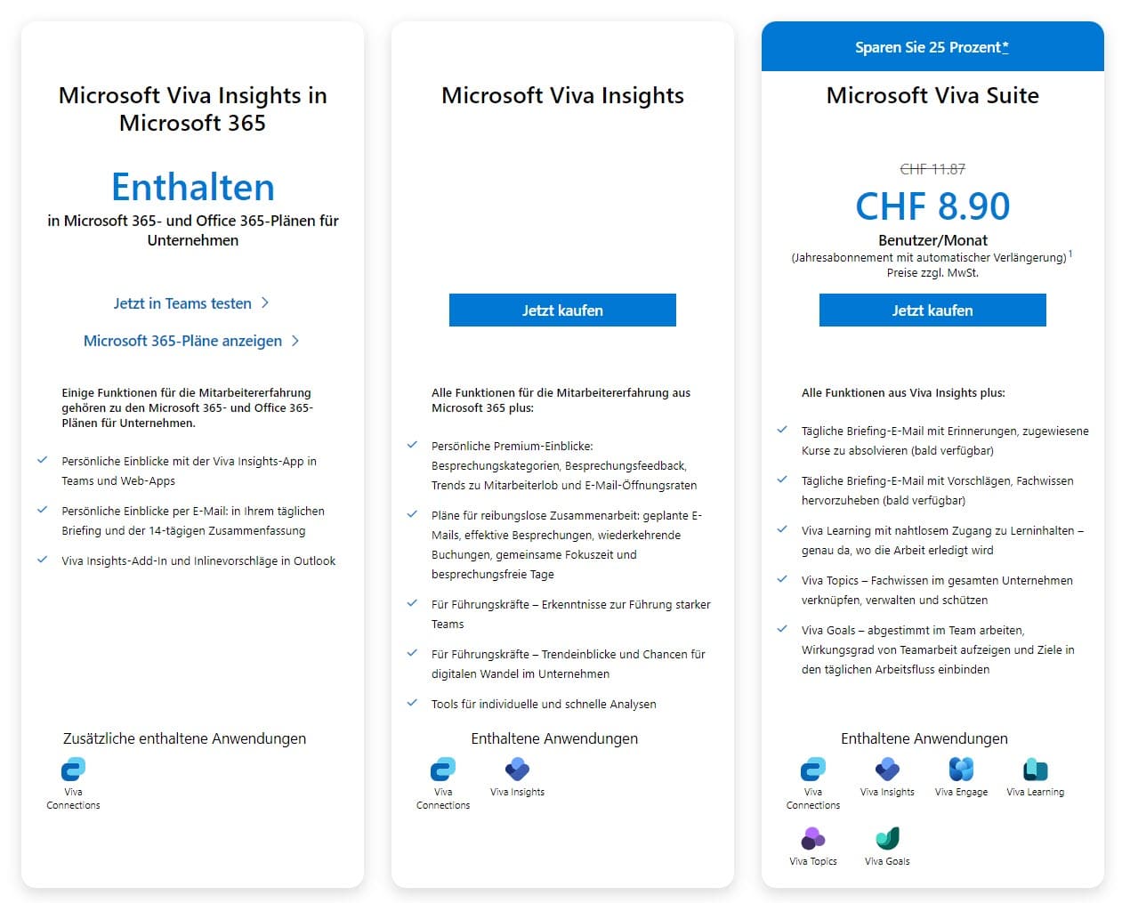 Die detaillierten Infos zu den Lizenzplänen sind hier zu finden: microsoft.com/de-ch/microsoft-viva/insights?market=ch