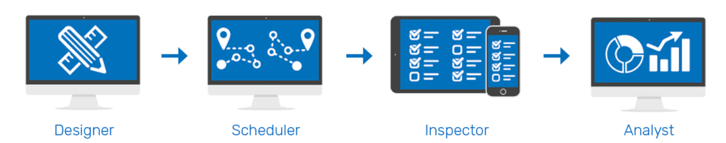 Der Inspector ist das Userinterface auf den unterschiedlichen mobilen Geräten. Auf diesem können die unterschiedlichen Fragebögen ausgefüllt werden. Über die Eincheck- und Auscheckfunktion wird die Zeit aufgezeichnet. Der Inspector ist auch offline nutzbar.