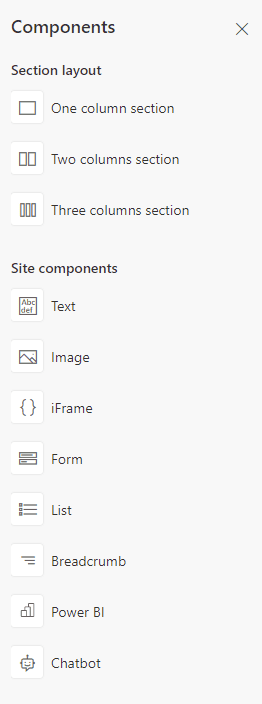Portalen stehen ein-, zwei- oder dreispaltige Layouts zur Verfügung. Diese können beliebig mit Komponenten wie Text, Bild, Formular oder PowerBI-Reports befüllt werden.