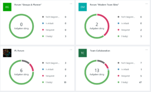 Zukünftig wird in SharPoint ein Planner Webpart vorhanden sein, um das Dashboard der Aufgaben eines Projektplans anzuzeigen. Es wird auch möglich sein, den gesamten Plan darzustellen.