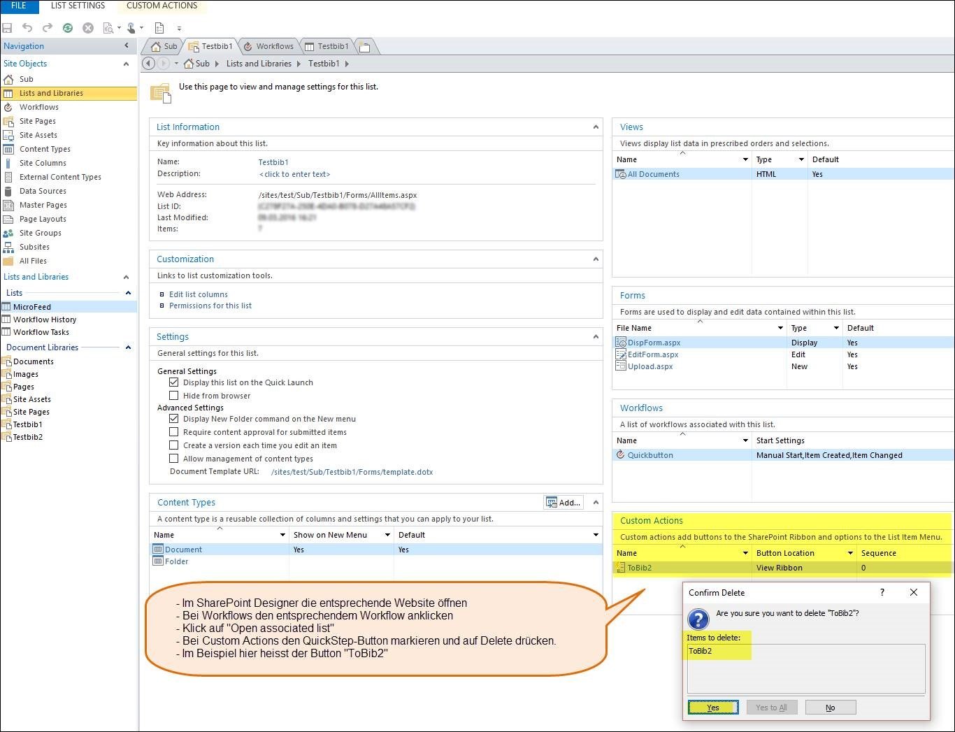 QuickStep bietet die Möglichkeit, wiederkehrende Aufgaben per Knopfdruck zu automatisieren. Im SharePoint-Ribbon können Sie einen Button für benutzerdefinierte Aktionen bei Elementen in Bibliotheken oder Listen erstellen. Die Aktion lässt sich dann mit einem Klick ausführen.