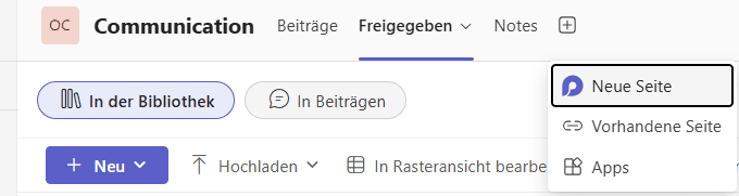 Die Loop Seiten werden mit dem Dateiformat .loop im Kanal-Ordner eines Teams angelegt und können sowohl in Teams direkt eingebunden werden oder dann über die SharePoint Bibliothek geöffnet werden.