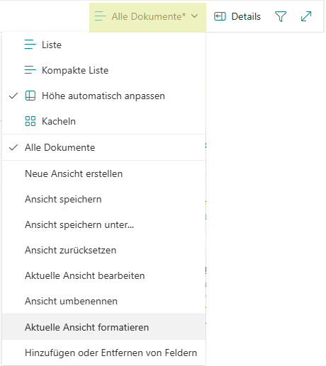 SharePoint Kontextmenü und Befehlszeile mit View Formatierung anpassen