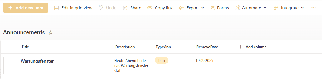 Die View Formatierung muss pro SharePoint Ansicht separat eingefügt werden. Nebst dem ein/ausblenden kann u. a. auch der Text, das Icon, den Style oder die Position konfiguriert werden. Es ist zurzeit nicht möglich, eigene, zusätzliche Befehle einzufügen.