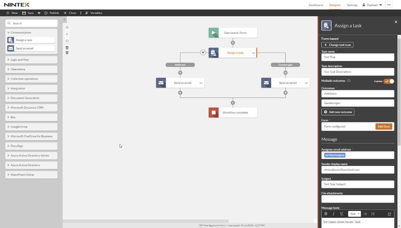 Falls notwendig, wäre der Prozess einfach erweiterbar – z.B. um die Erstellung eines Genehmigungsdokuments. Nintex bietet mit dem «Document Generation»-Dienst die passende Möglichkeit dazu.
