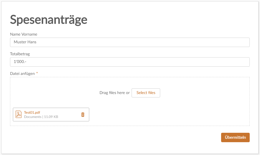 Das Formular kann via Nintex Mobile oder öffentlicher URL ausgefüllt werden. Ein grosser Vorteil von Nintex Mobile: Die App bietet neuerdings die Möglichkeit, Entwürfe umzubenennen. So können Informationen ganz einfach zusammengetragen werden, bevor das Formular übermittelt wird und man weiss stets, welches Element begonnen wurde.