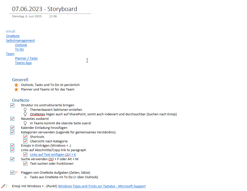 Zwar sind im Standard von M365 für eine Koexistenz von OneNote und Planner (aktuell) wenig Automatisierungen vorhanden, allerdings lässt sich das technische Manko mit einem definierten Ablauf und Spielregeln einfach und unkompliziert wettmachen.