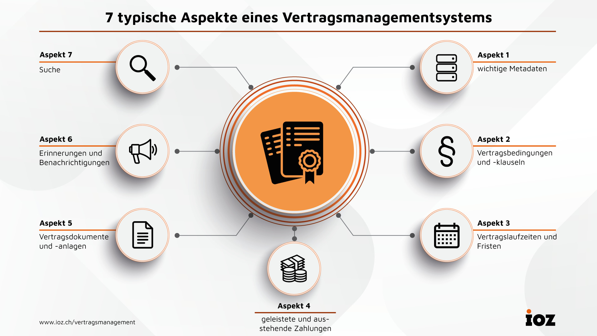 Die 7 typischen und wichtigen Aspekte eines Vertragsmanagementsystems sind